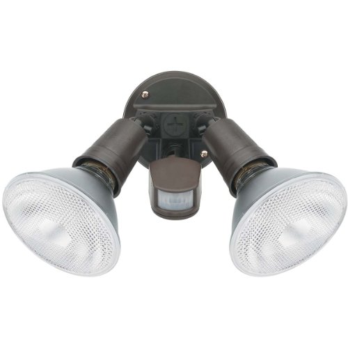 Globe 2 head infrared motion sensored security light provides safety and quality light for the outside of your home. This security light has a 180-Degree motion sensor range that will automatically turn on when motion is detected. This outdoor landscape light fixture requires 2 150-Watt br38 light bulbs
