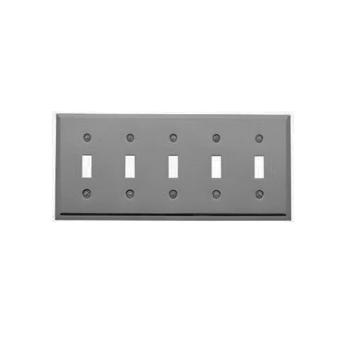 4775.150.CD Finish: Satin Nickel Features: -Five gang toggle switch plate.-Classic square bevel design.-Beveled edge. Color/Finish: -Polished brass finish.-Satin nickel finish. Dimensions: -Overall dimensions: 4.5'' H x 10'' W.