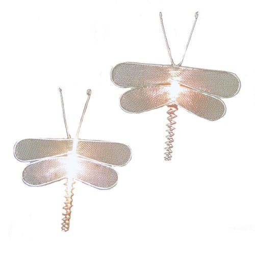This Kurt Adler 10-Light Silver Mesh Dragonfly Light Set is a fun, unique way to add to the lighting of your theme party or home decor. Each of the 10 lights in this novelty indoor/outdoor light set resembles a whimsical dragonfly with delicate mesh metal wings. Each light set has a 30-Inch lead wire, 12-Inch spacing, green wire, 12V 0.08A incandescent bulbs, 4 spare bulbs, and 1 spare fuse.