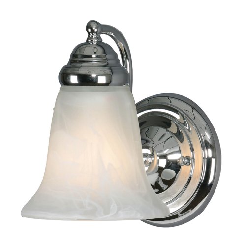 Golden Lighting's Centennial CH Wall Sconce fixture - 5222-1 CH Bath fixtures may be mounted with the glass facing up or down. If the glass does not sit level adjust by gently pushing each arm back just a little. The arms are a bit flexible. Works well for re-emerging traditional styles Bright Chrome finish Marbled glass creates a brighter mood Affordably priced Popularly used in halls, stairways, entrys and as an accent. Centennial CH Chrome Width: 4.5 Height: 8 Extension: 7 Wire Length: 8" Glass / Shade Finish: Marbled Glass Glass / Shade Diameter: 5.5 Glass / Shade Height: 5.25 Canopy / Backplage Dimension: 5.125"Dia x 1.375"E Fixture Wattage: 1 x 100W(M) UL Listing: damp Number of Sockets: 1 Max Wattage: 100W Total Wattage: 100W Bulb Type: Incandescent, Type A Bulb Included: No Material Metal / Glass