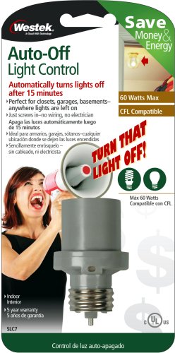 Automatically turns light off after 15 minutes. Perfect for closets, garages, basements, or anywhere lights are left on. Works with incandescent or compact fluorescent bulbs. Creates an energy efficient home as lights are on only when needed.