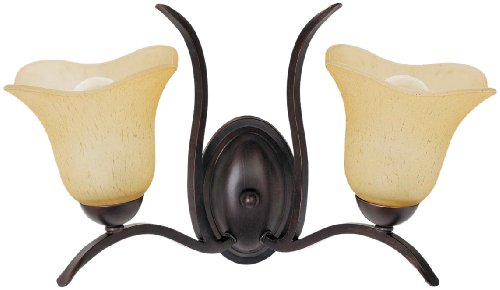 This 2-lamp light wall fixture is apart of the Senneville Collection, a Globe best-seller. With it's unique tulip shaped amber glass shades and dark coffee finish, this fixture compliments many popular decor styles. This wall sconce light fixture requires 2 A15 light bulbs with a 60-Watt max.