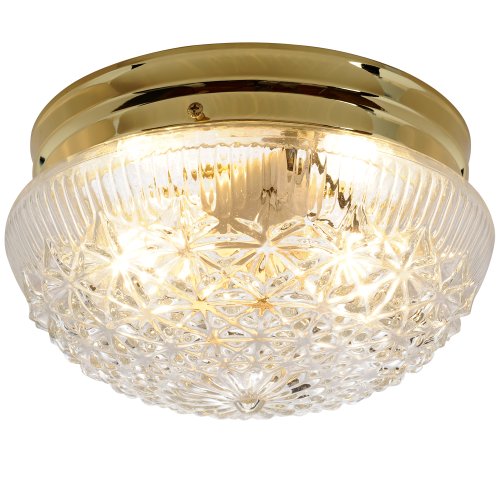 AF Lighting 671311 2 Light Flushmount Ceiling Fixture in Polished BrassThis glass ceiling fixture recalls the days of vintage lighting design. It features a retro-style diamond-cut, mushroom-shaped globe with traditional brass accents.Features:Clear diamond-cut mushroom-shaped glass with brass accents UL listedSpecifications:Requires (2) x 60 Watt Medium Base Bulbs (Not Included)Width: 9"Height: 5"