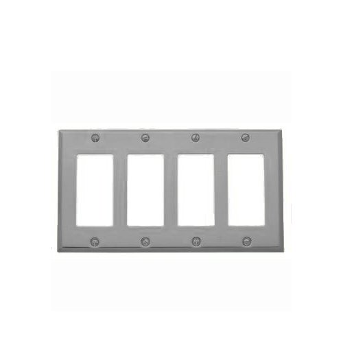 Switchplate:Quadruple GFCI - Classic, Finish:Satin Nickel These classic, beveled-edge plates are forged from solid brass, and are available in a wide variety of durable Baldwin finishes. Also available with different numbers of openings for GFCI or other special-purpose applications. See options to select finish type and number of openings. Sold individually. Note: Product finishes which are RELIEVED may vary in luster, hue, and appearance as a result of handcrafted variances in the final finishing step.