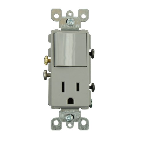 15 Amp, 120 Volt, Decora Style Single-Pole / 5-15R AC Combination Switch, Commercial Grade, Grounding, Side Wired - Gray , UPC: 07847712271