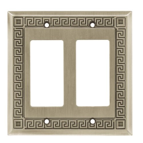 Get the Liberty Greek Key 2-Gang Brushed Satin Pewter Double GFCI/Rocker Switch Wall Plate to capture traditional elegance in your home. Change out your old wall plates and give any room a brand new feel. It has a border design that adds character and sophistication.