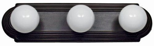 Vanity Lighting Three Light Ambient Lighting 18" Wide Bathroom FixtureThe traditional base of this bathroom vanity light is offset by the contemporary globes of the glass shades.Features:Three light ambient lighting bath barMetal with glass constructionUL Rated for damp locations1 year warranty on partsAssembly RequiredSpecifications:Requires (3) x 60 Watt Medium base bulbs (Not Included)Height: 5"Width: 18"