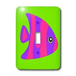 The Detailed Description of 3dRose LLC lsp_57110_1 Cute Bright Purple and Pink Stripe Tropical Fish on Green, Single Toggle SwitchFeatures