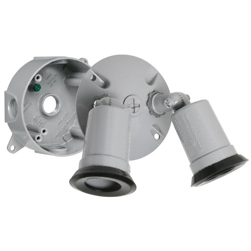 Taymac LT233S Traditional Outdoor Flood Light Kit, Gray. Superior Commercial quality die cast metal construction. Premium Gray Powdercoat Finish. Includes Two Lampholders, Round Cover, 5 Hole Round Box, Closure Plugs, Ground Screws, and Mounting Hardware. UL listed and 2008 NEC compliant. Outdoor lighting fixture kit is great for garage or office.