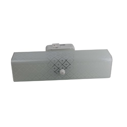 The Detailed Description of Sunlite B14 GCO 14-Inch 2-Bulb Rectangle Bathroom Wall Fixture, with Outlet White Finish with Ornate White GlassFeatures